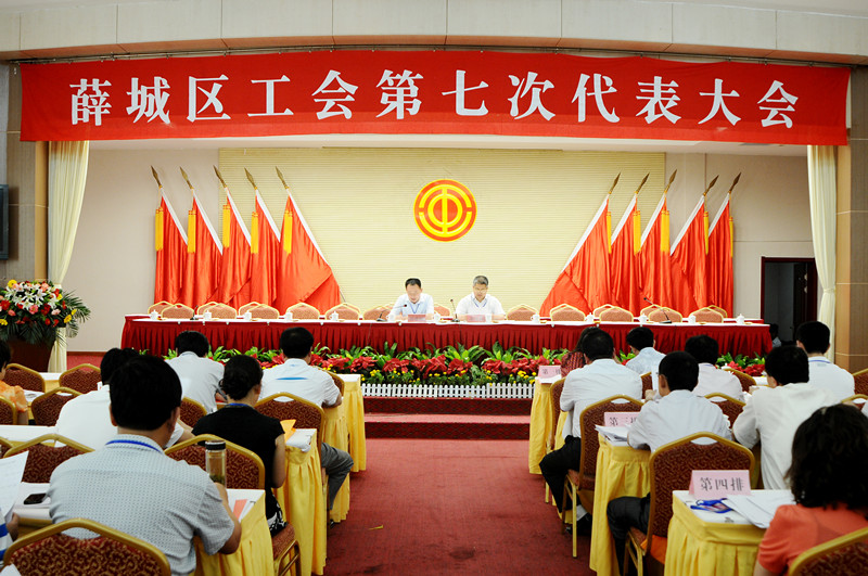 ![]() ![]() ![]() ![]() ![]() ![]() ![]() ![]() ![]() 6月1日--2日,薛城区工会第七次代表大会在薛城宾馆召开。大会总结回顾了区工会过去六年来的工作,明确了今后五年的目标任务,选举产生了新一届领导班子。枣庄市副市长、薛城区委书记张鲁军,枣庄市总工会常务副主席王国栋,区委副书记、区长吴磊,区人大常委会主任贾福章,区政协主席王艳君,区委常委、宣传部长刘侠,区委常委、区人武部政委于建水,区人大常委会副主任、区总工会主席李天禹等出席。 6月1日,160名正式代表到会报到,并召开了大会预备会议和大会主席团第一次会议。会议由区人大常委会副主任、区总工会主席李天禹主持。预备会议听取了大会筹备工作情况报告;通过了大会主席团、秘书长等建议名单;讨论了大会选举办法等。
