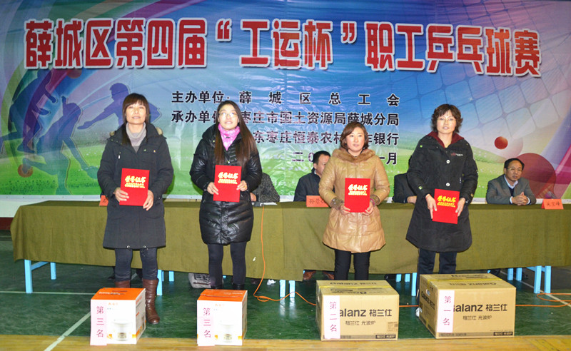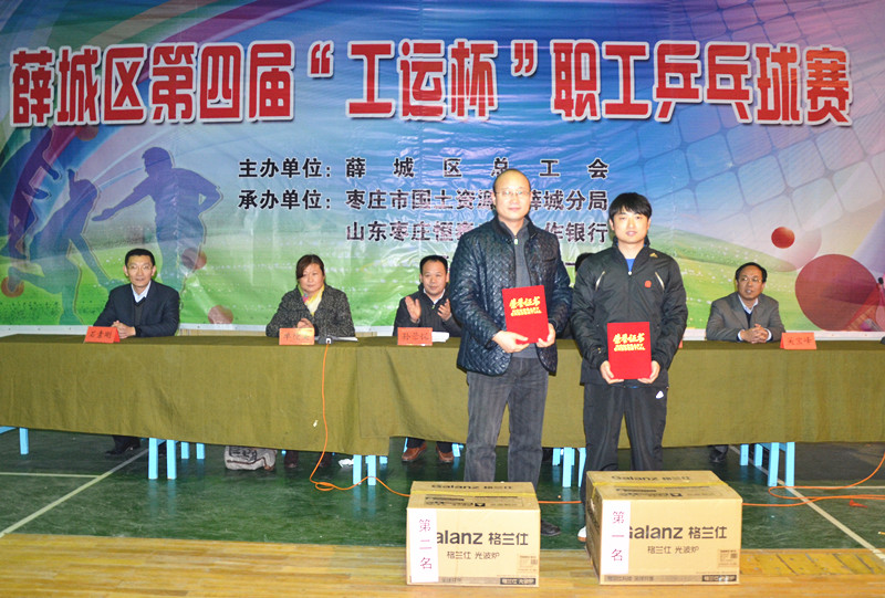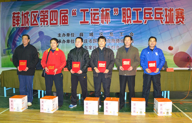 在各级工会的高度重视和精心组织下,共由25支代表队,110余名运动员参加了团体、男单、女单三个项目的角逐。各代表队领队、教练员、运动员、裁判员、工作人员近200人参与了比赛,这次比赛参赛队员多、范围广,是薛城区乒乓球运动史上空前的一次的乒乓球运动盛会。特别是在25支代表队中,有来自我区镇街、机关、事业单位的代表队,有来自枣庄西站、枣矿集团高晟公司等大型国有企业代表队、也有来自薛城梦燃公司、梁师傅蛋糕等私营企业的代表队,充分体现了我国“国球”的普及型和全区职工参与乒乓球运动的热情。三天的比赛酣畅淋漓、悬念不断、高潮迭起、精彩纷呈。最后由枣庄市国土资源局薛城分局获得团体比赛第一名,薛城区煤炭总公司获得团体第二名,陶庄镇、区人大分获团体并列第三名,枣庄恒泰合行、枣庄西站、高晟公司、梦燃公司分获团体并列第五名;陶庄镇孔潇杰获女子单打第一名、梦燃公司杨宗英获女子单打第二名、沙沟镇宋桂菊、刘春霞分获女子单打并列第三名;区煤炭总公司孟凡奇获男子单打第一名、区国土资源分局亓鹏获男子单打第二名,区人大尚鲁生、贝斯特满高石分获男子单打并列第三名,徐德林、孟庆华、孙涌杰、吕高东分获男子单打并列第五名。枣庄市地税局薛城分局、薛城区住建局、薛城区临城街道办事处、薛城区安阳煤业有限公司代表队获得优秀组织奖。比赛在欢庆的运动员进行曲中,载着胜利的喜悦圆满的闭幕了。