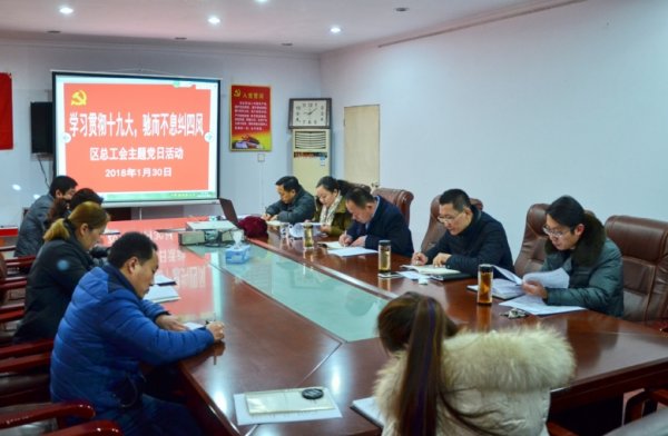 1月30日上午,区总工会组织开展了2018年首次“主题党日”活动。本次“主题党日”活动的主题是“学习贯彻十九大,驰而不息纠四风”,活动由区总党组书记、常务副主席孙景悦主持,全体党员干部和入党积极分子参加。 ![]() 学习会上,传达了《关于开展“学习贯彻十九大,驰而不息纠四风”主题党日活动的通知》、《关于认真学习贯彻党的十九届二中全会精神的通知》等文件精神;组织学习了关于《习近平总书记〈形式主义、官僚主义新表现值得警惕〉文章批示精神》和形式主义、官僚主义新表现值得警惕的十种表现等学习资料。 ![]() 孙景悦要求,全体党员要深入学习贯彻党的十九大精神和习近平新时代中国特色社会主义思想,以学习中央和省、市、区委有关文件、精神为契机,进一步树牢“四个意识”,坚定“四个自信”, 做到“四个服从”,不忘初心,牢记使命,以永远在路上的坚韧力戒形式主义、官僚主义等“四风”问题;着力加强政治理论和业务学习,持续转变改进工作作风,高度负责抓好工会各项工作落实,不断提升工作能力水平。 (孙博文 朱涛) |