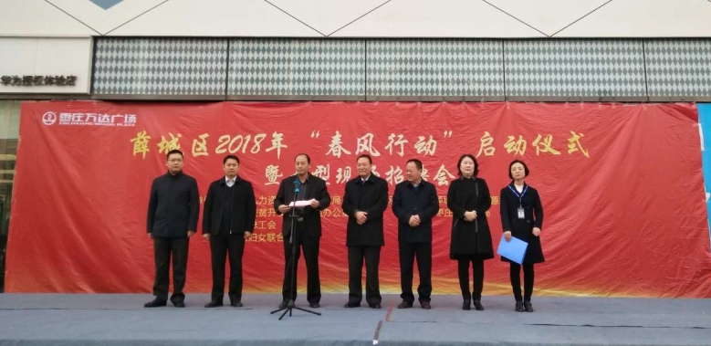 2月24日上午九点,由区人社局、区扶贫办、区总工会、区妇联联合举办的薛城区2018年“春风行动”启动仪式暨大型现场招聘会在万达广场举行。区委常委、常务副区长李玉森,区人社局局长宋波,区扶贫办主任刁文奇,区总工会党组书记、常务副主席孙景悦,区妇联主席张宏参加了本次活动。 ![]() 李玉森发表讲话,他指出,就业是民生之本、安国之策、和谐之基,是每个劳动者赖以生存和发展的基础。2018年是全面贯彻落实党的十九大精神的第一年,也是我区调整经济结构、转变发展方式、着力改善民生、抓好精准脱贫的关键之年,为此我区将继续把促进就业放在经济社会发展的突出位置,推动我区就业、创业工作持续健康发展,把就业扶贫特别是农村劳动力就业放到突出位置,建立扶贫就业的长效机制,各部门要按照“春风”行动的总体要求,不断优化环境,切实维护劳动者合法权益,圆满完成“春风行动”的各项任务,为薛城区经济社会发展再作贡献、再立新功、再创佳绩。