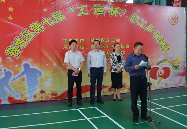 为贯彻落实习近平新时代中国特色社会主义思想和党的十九大精神,进一步丰富全区职工文体生活,开展以创建国家文明城市、卫生城市、生态园林城市、节水型城市、省级食品安全城市“五城同创”为主题的教育活动,5月23日,bet43365最快线路检测中心举行的薛城区第七届“工运杯”职工乒乓球赛在薛城锐动体育馆胜利开幕,区委常委、宣传部部长姜妍致开幕词,区委常委、区委办公室主任马骞宣布比赛开幕,枣庄市总工会副主席范晓兵出席开幕式。
