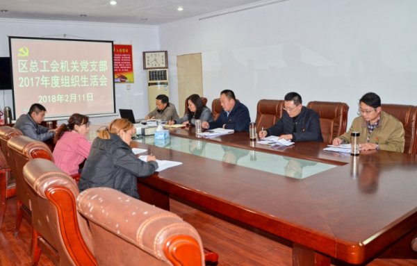 2月 11 日, 区 总工会机关党支部召开 2017年度组织生活会 ,并开展民主评议党员, 支部全体党员参加会议。 为了开好这次组织生活会,机关党支部进行了认真充分的准备,积极开展谈心谈话活动,广泛征求基层工会对区总机关党支部和支部委员、班子成员意见;并通过学习,提升思想认识,认真查摆问题,撰写对照检查材料。 会...