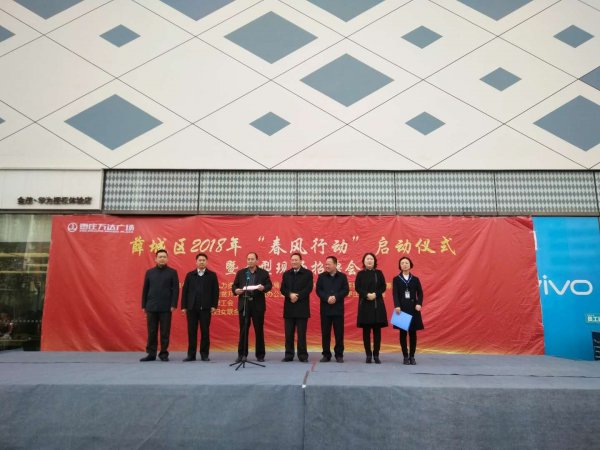 2月24日上午 九点 ,由区人社局、区扶贫办、区总工会、区妇联联合举办的 薛城区 201 8 年 春风行动启动仪式暨大型现场招聘会在万达广场举行。区委常委、副区长李玉森 , 区 人社局 局长宋波, 区扶贫办主任刁文奇, 区 总 工会党组书记、常务副主席孙景悦,区妇联主席张...