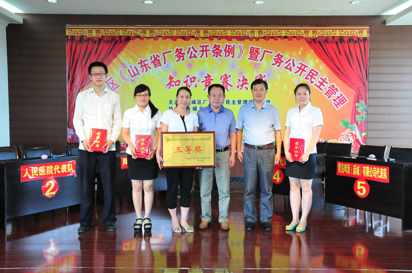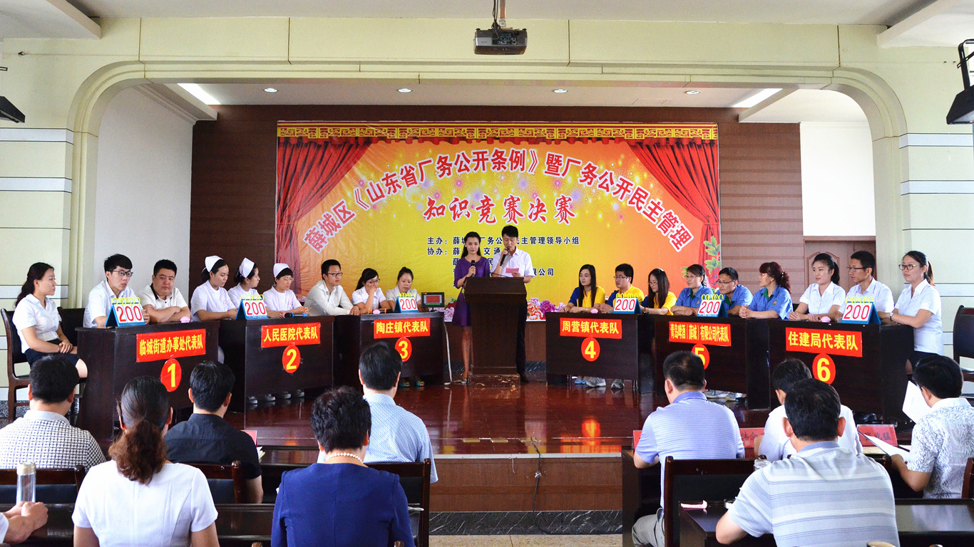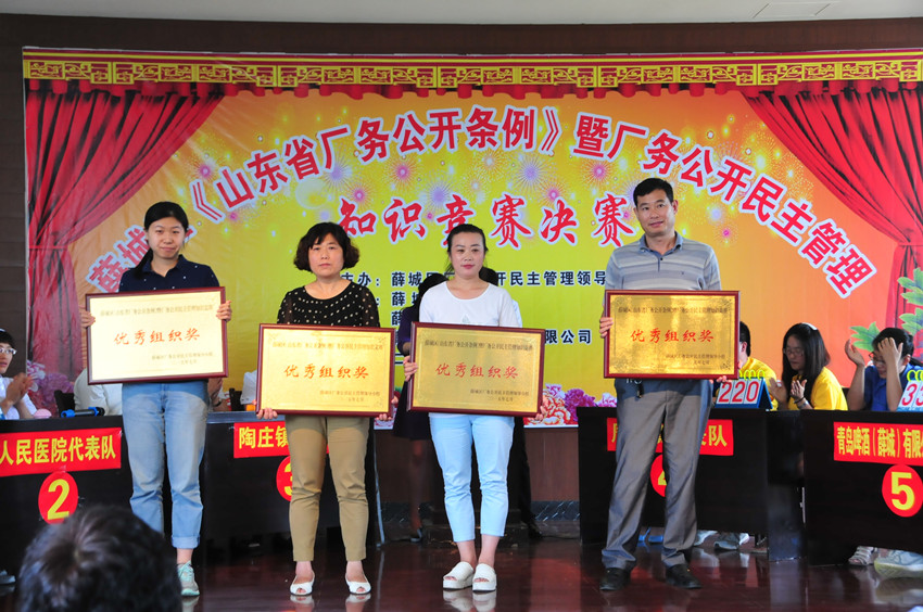 ![]() ![]() ![]() ![]() ![]() 7月2日上午,由区厂务公开民主管理领导小组主办的薛城区《山东省厂务公开条例》暨厂务公开民主管理知识竞赛决赛在区交通运输局六楼会议室隆重举行。区总工会党组书记、常务副主席孙景悦,市总工会职工技术协会办公室主任韩念品,区委宣传部副部长张皓及区委组织部等有关成员单位领导观看比赛并为获奖者颁奖。各镇(街)、系统和区直有关单位职工共计150余人到场观看比赛。 本次知识竞赛活动共有10支代表队报名参加,经过两个多月的精心筹备和前期的预选赛,陶庄镇代表队、临城街道办事处代表队、周营镇代表队、区住建局代表队、区人民医院代表队、青岛啤酒(薛城)有限公司代表队6家单位脱颖而出进入此次竞赛的决赛。 决赛共设置了个人必答题、抢答题、风险题、加赛题、观众互动题五种题型。经过一个半小时的紧张角逐,青岛啤酒(薛城)有限公司代表队获得本次知识竞赛一等奖;区住建局代表队、临城街道办事处代表队获得二等奖;陶庄镇代表队、区人民医院代表队、周营镇代表队、获得三等奖。邹坞镇等4个单位获得薛城区《山东省厂务公开条例》暨厂务公开民主管理知识竞赛活动优秀组织奖。 今年是《山东省企业职工代表大会条例》颁布十周年、《山东省厂务公开条例》颁布实施一周年。按照省、市总工会要求五月份是集中开展两个《条例》宣传活动的宣传月。为开展此项活动,区总工会制定印发了《薛城区厂务公开民主管理知识宣传月活动方案》,要求各基层工会组织充分利用广播电视、报刊杂志、网络信息等传媒渠道,通过开辟专栏、知识问答、法律咨询等多种形式进行宣传。活动月期间,区总工会还编印了下发了《薛城区企事业单位厂务公开民主管理及职工(代表)大会操作指南》书籍500余册,两个《条例》宣传单15000余份;举办厂务公开民主管理知识讲座4次,200余名基层工会干部参加培训。同时,积极组织人员深入企业进行宣传指导,使“依法建立职代会制度和厂务公开制度”成为全社会的共识,努力推动形成办事依法、遇事找法、解决问题用法、化解矛盾靠法的良好法治环境。